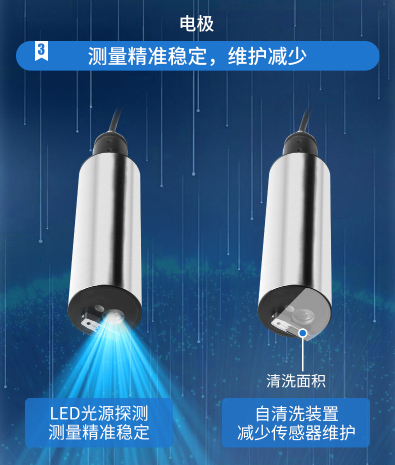 產(chǎn)品簡介:濁度/污泥濃度傳感器的原理基于組合紅外吸收散射光線法,應(yīng)用 ISO7027 方法可以連續(xù)并精確地測定濁度或污泥濃度。