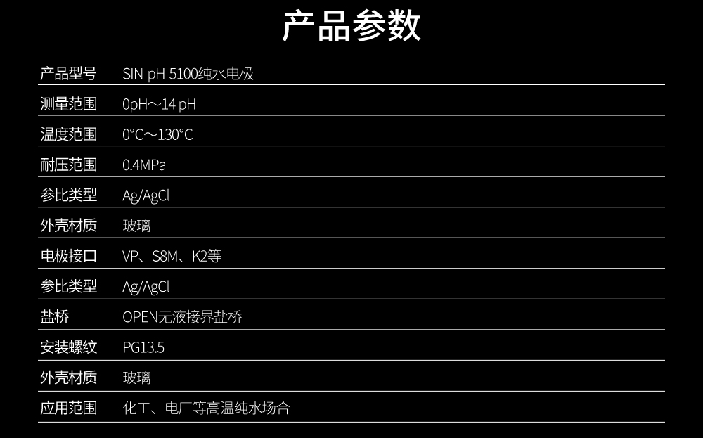 產(chǎn)品簡介:pH-5100 電極使用耐壓半球形 pH 敏感膜,混合膠 GMT 構(gòu)成的中介電介質(zhì),Ag/AgCL/KCL 外參比體系,無鹽橋 (OPEN)開口液接界所構(gòu)成。