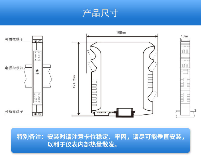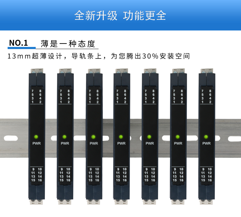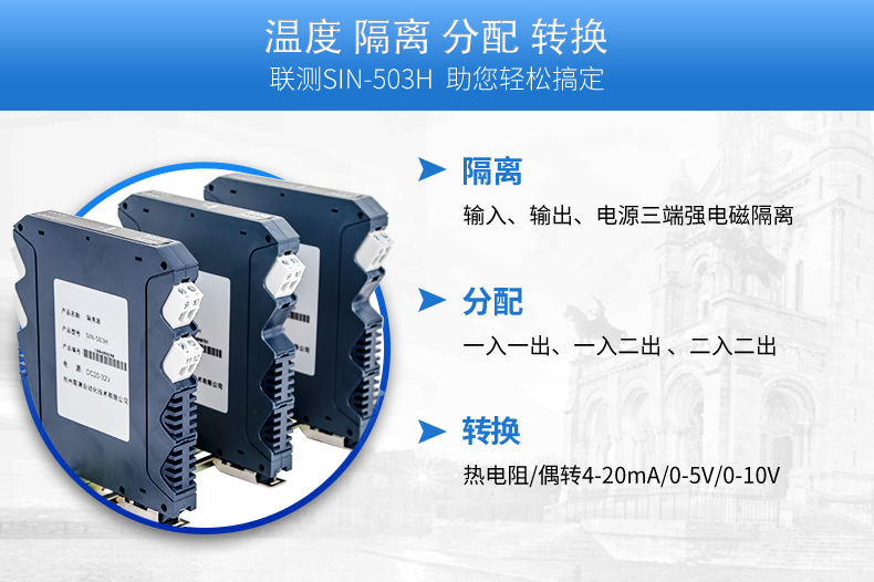 產品簡介:將PT100等熱電阻跟熱電偶信號轉換成各種電流、電壓等標準模擬量信號,可以與PC機、PLC、DCS等實現工控監測連接。抗干擾能力強,遠傳不受其他設備影響。輸入、輸出選擇范圍寬,準確度高。電源可選擇,導軌安裝便于檢測與安裝。廣泛應用于各種對溫度集中測量的監控系統中。