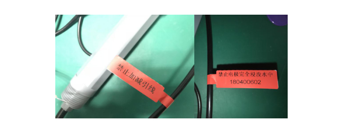技術服務部負責人徐工為我們做出了解答,其實其中的奧秘就在兩個小標簽上。17年年底時公司發現了此類問題,于是經過改進,電極制造出貨時都會在電極線上加附上標簽,溫馨提醒客戶注意電極的進水風險。