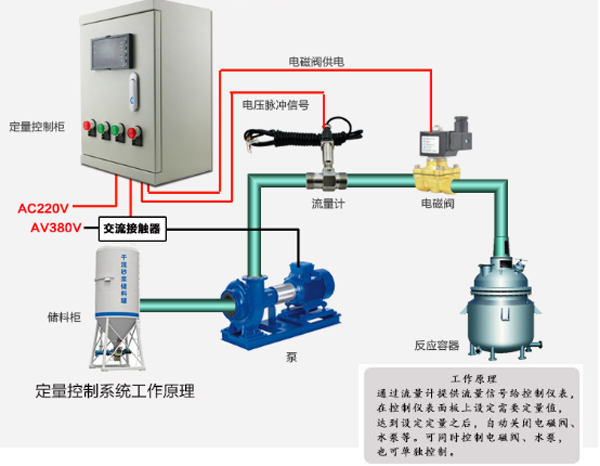 整個系統(tǒng),定量計量開始時,定量控制儀指示電磁閥開啟,流體進入流量傳感器。一般的流量傳感器,工業(yè)上通常會選用脈沖輸出的渦輪流量計,以保證數(shù)據(jù)的響應速度,當然有些設備為保證精度會采用電磁流量計。流量傳感器將流量信號傳給定量控制儀并開始計量,當流量達到設定值時,定量控制儀發(fā)出指令使電磁閥、水泵等斷開(可同時控制電磁閥、水泵,也可單獨控制),恢復到初始的關閉狀態(tài),從而實現(xiàn)了水量的定量控制。