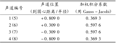對于多聲道超聲流量計,其每個聲道的積分加權系數是一個固定值,并且在國際電工委員會的IEC6041規程和美國國家規程ASMEPTC18中作了明確的規定。為了滿足各種不同流態分布測量的需要,多聲道流量計具有多種聲道布置,對應每種聲道布置,積分加權系數都有確定的值。表1是國際電工委員會IEC6041規程關于4/8聲道超聲流量計的聲道位置和加權積分系數的規定值。