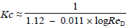 Kc的數值主要取決于流體的雷諾數。如果聲道在通過管道軸線的平面內,則由式(5)給出Kc的一個近似值: