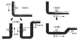 測量液體時為保證測量,渦街流量計的 管道必須充滿液體。渦街流量計安裝在水平管道上時,應將下游段的管道高于渦街流量計,以保持滿管;當流體向下流動時,應將下游段的管道高于渦街流量計,以 保持滿管。流量計安裝在垂直管道上時,流體應該向上流動,當流體向下流動時,應將下游段的管道高于渦街流量計,以保持滿管,如圖3所示。